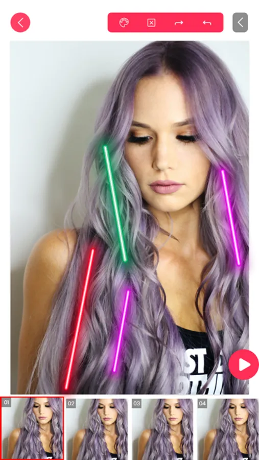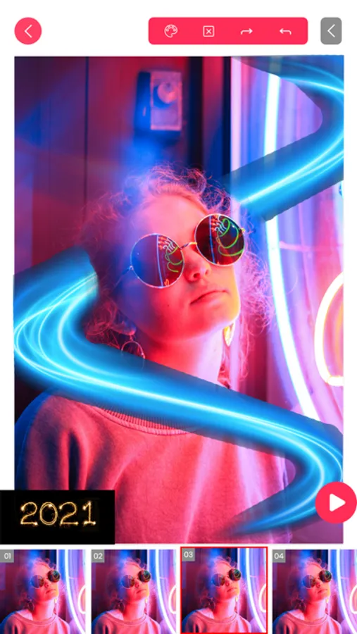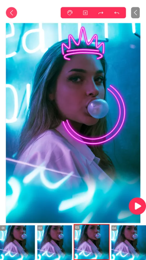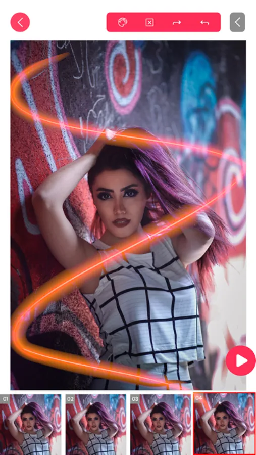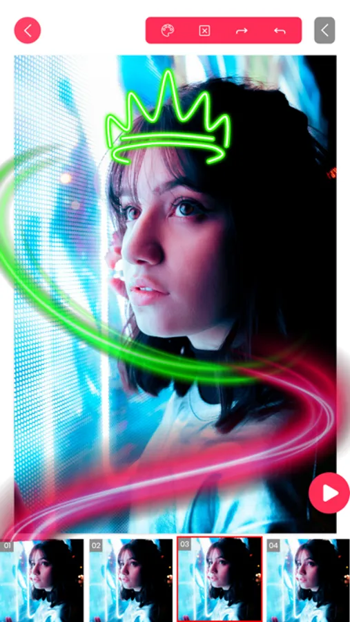 Neon Video Editor helps you to doodle and draw colorful glowing light effects in your video. Freestyle hand drawing allows you to draw anything you want to show your creativity. You can draw frame by frame to add amazing animation effects.