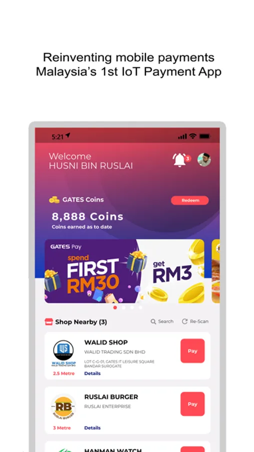 GATES Pay is Malaysia’s 1st IoT Payment App.
