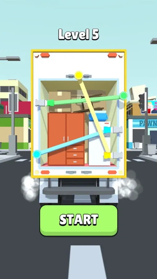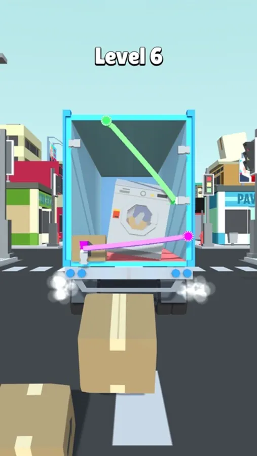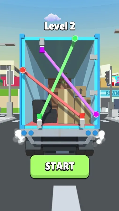 Connect belt to win the game. Try to peek the highest level by using belt, string, chain,... to prevent your package from falling off during the delivery. Drag the lines and connect them together to keep your goods safe. Get ready for various line puzzle challenges to boost your brain power. Think outside the box to get your transport truck to the final round. A whole lot of package, parcel,... are waiting for you to be delivered. Get on your truck and master the game!