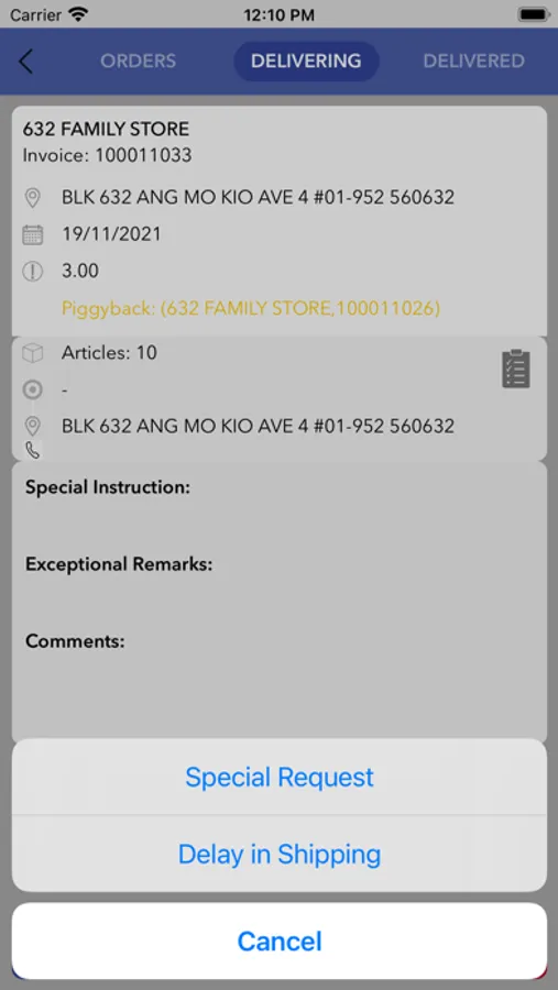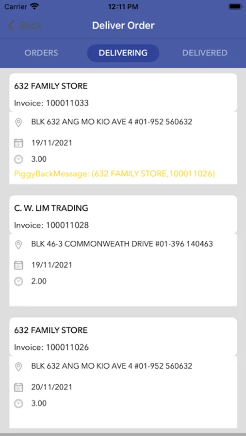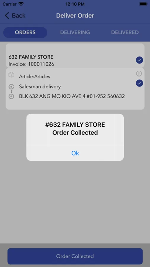 Allows users to see the list of orders to be delivered. Capture delivery remarks and update delivery status in real time.