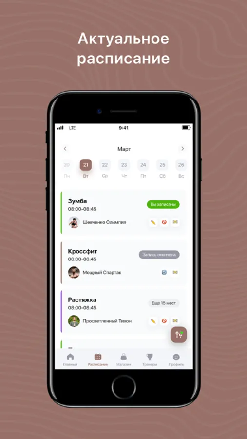 - Записаться на групповые тренировки;