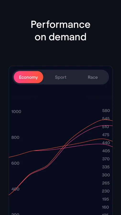 Select from 6 driving modes: 2x RACE, MIX, STOCK, 2x ECO. Try each mode to get the most performance or fuel efficiency out of your car.