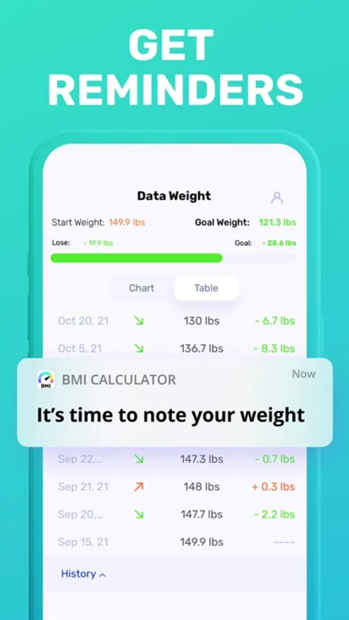 BMI Calculator can set a target and track your weight loss step-by-step with a tracker.