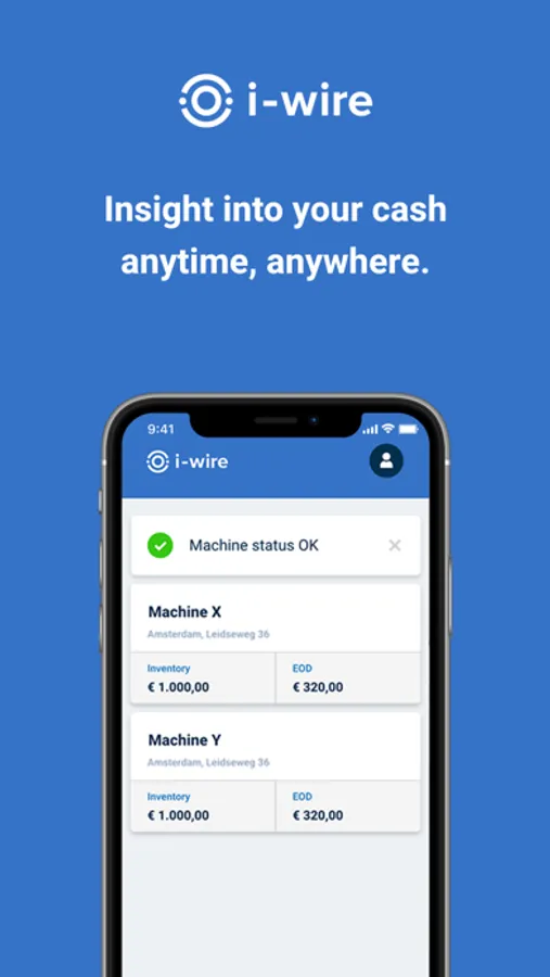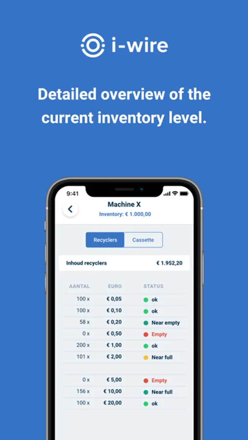 Turn on push notifications. Receive notifications on your phone when action is required on your machine. Notifications are sent when events occurs: F.e. Recyclers empty / near empty, Cassette full / near full, Verify and System errors.