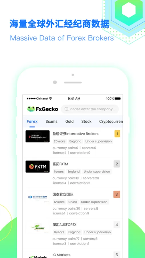 FxGecko is a third-party service provider for users to inquire whether a broker is formal, legal and real. FxGecko provides all-round service including broker’s information, regulation, license, risk exposure, credit and valuation, platform verification and monitoring, complaints solving and investor rights protection, credit report download and broker network inquiry. It is committed to help users screen and identify fake brokers and is an escort for forex traders!