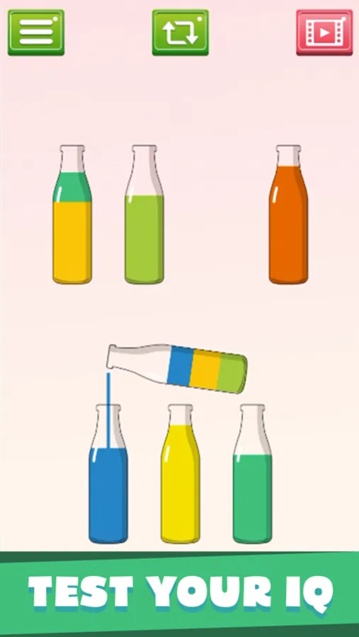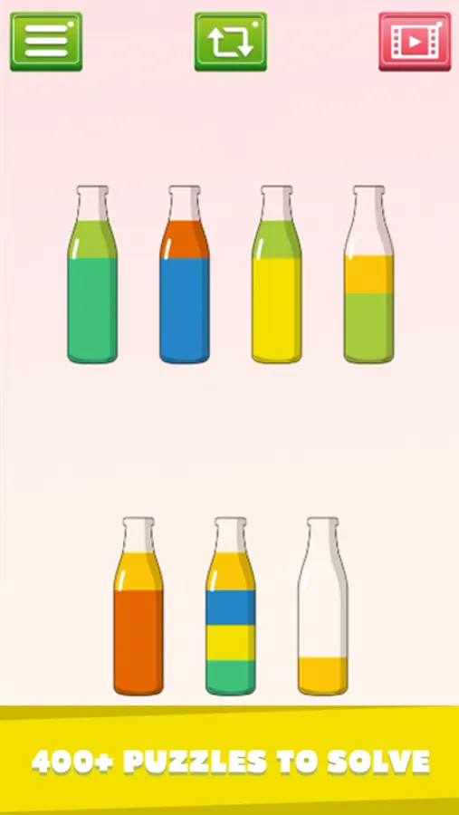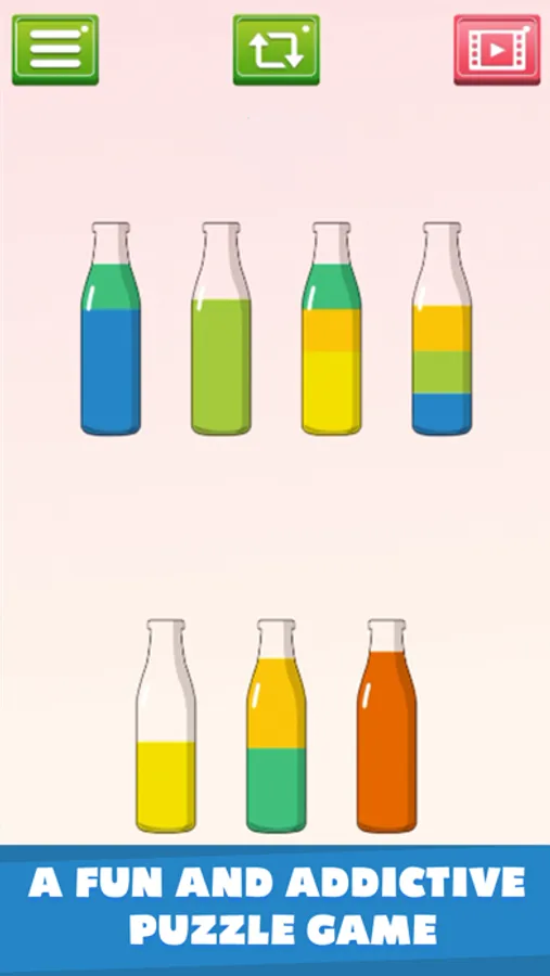 Water Sort Puzzle is a simple puzzle game. Sort the water into the bottles until there is only one color per bottle. Puzzle Sorting won’t let you place two with different colors directly next to one another, so you’ll have to think logically and find your own way to sort the water.