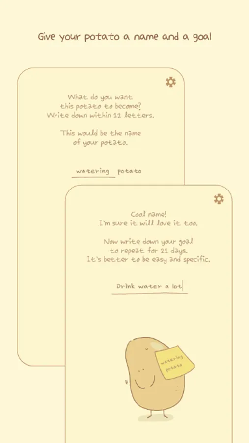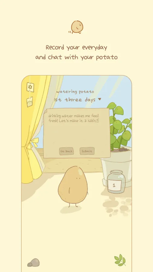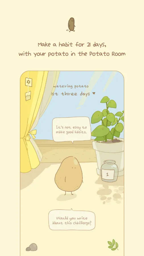 1. Set your goal and do it for 21 days. After 21 days, your potato friend will find its new goal, and you will get yourself a habit!