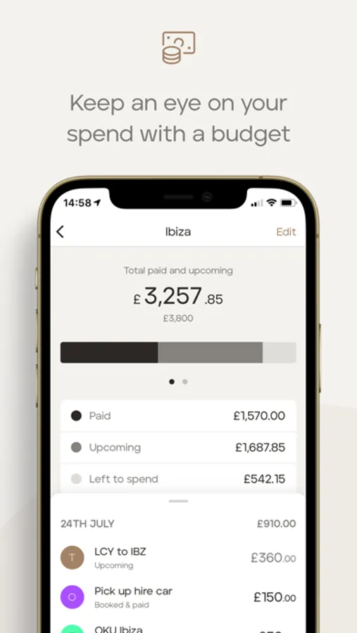Manage your itinerary, invite fellow travellers, plot your locations, attach your tickets, and receive notifications. Then, use the budget calculator to track your spending and payments in real-time.