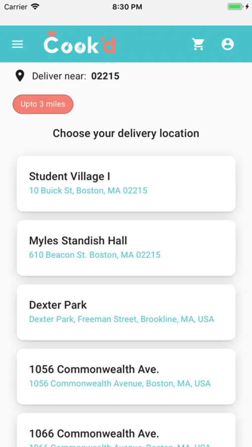 We offer both! Cook'd offers delivery to designated large student residences and dorms during specific delivery windows. Make sure to order by the time shown in the app to get your meal within the given delivery window.