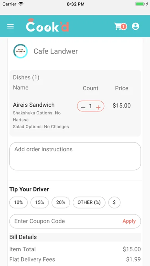 Using Cook'd also helps your local community! Cook'd charges a very small commission to restaurants, since we understand that they need a healthy profit margin to stay in business. We also pride ourselves in compensating our drivers well above market rate for the time they put in to bring fresh food to your door.