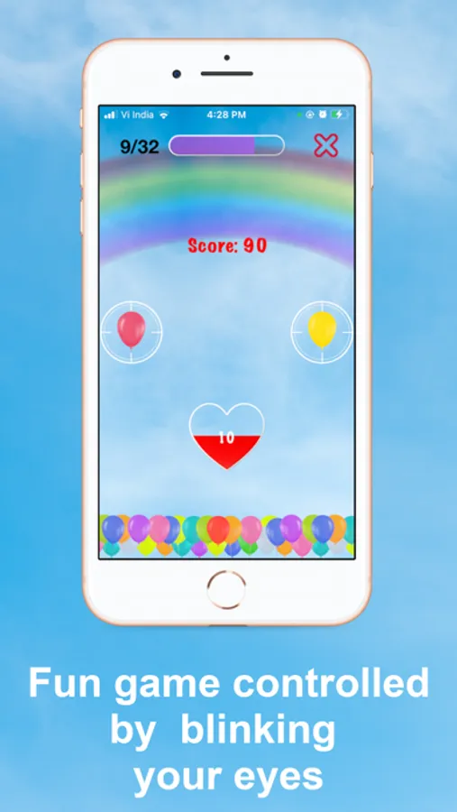 Blinqeye2 detects complete blinks of your eye(s) using your selfie camera and performs actions inside this balloon shooting game.