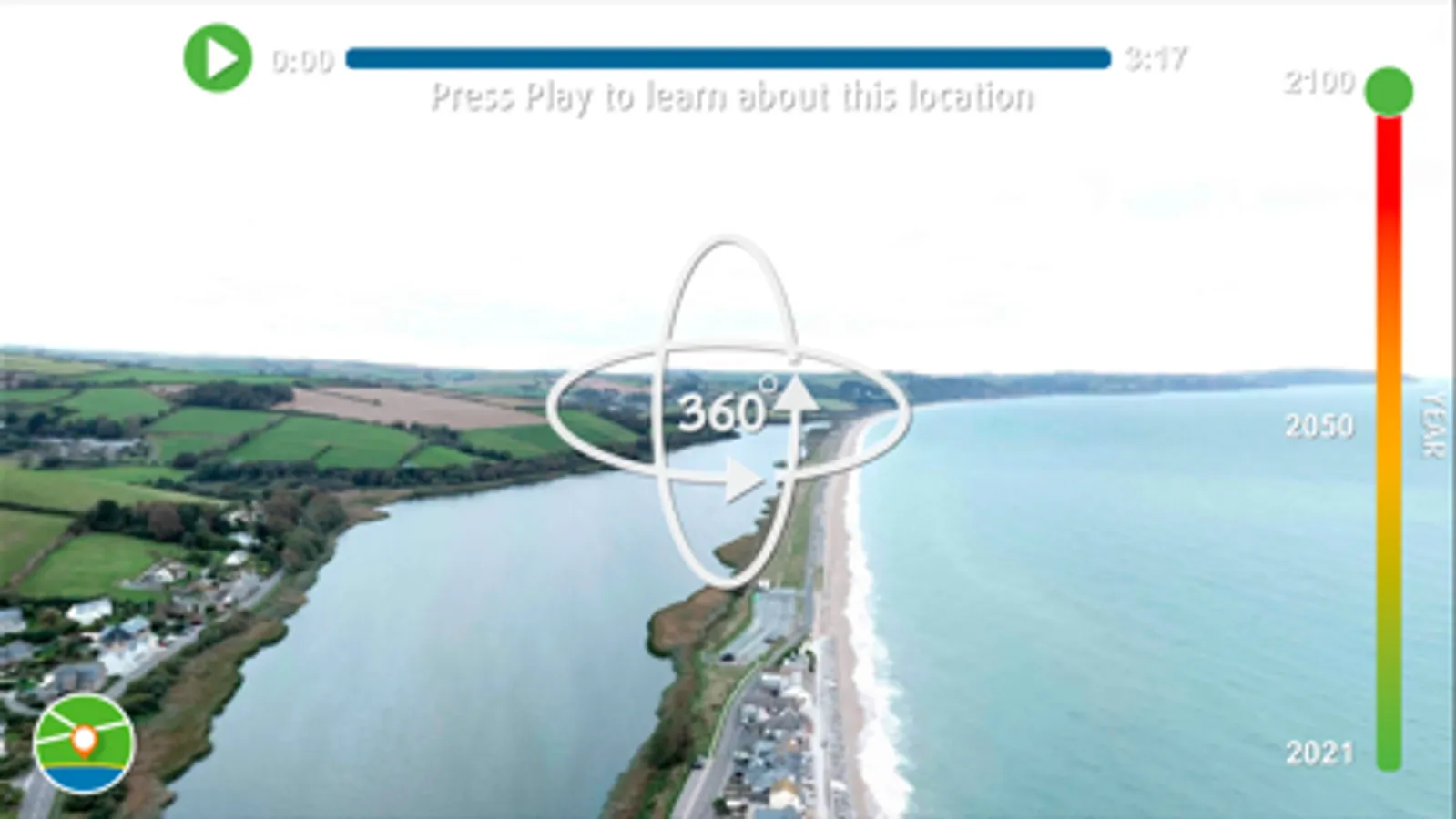 Both on and off site you can explore 360 panoramas of the coastal path locations. These are accompanied by narration and interactive visualisations that will teach you about each location and how it will be impacted by climate change