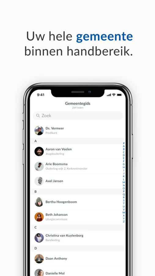 Does anyone still look up a telephone number in the telephone book? Hardly anyone! Thanks to the community guide feature, everyone within your congregation can be found. Send messages quickly, navigate to an address, or see what someone's role is in the Church? It becomes easy with the digital community guide.