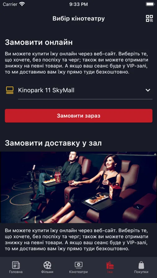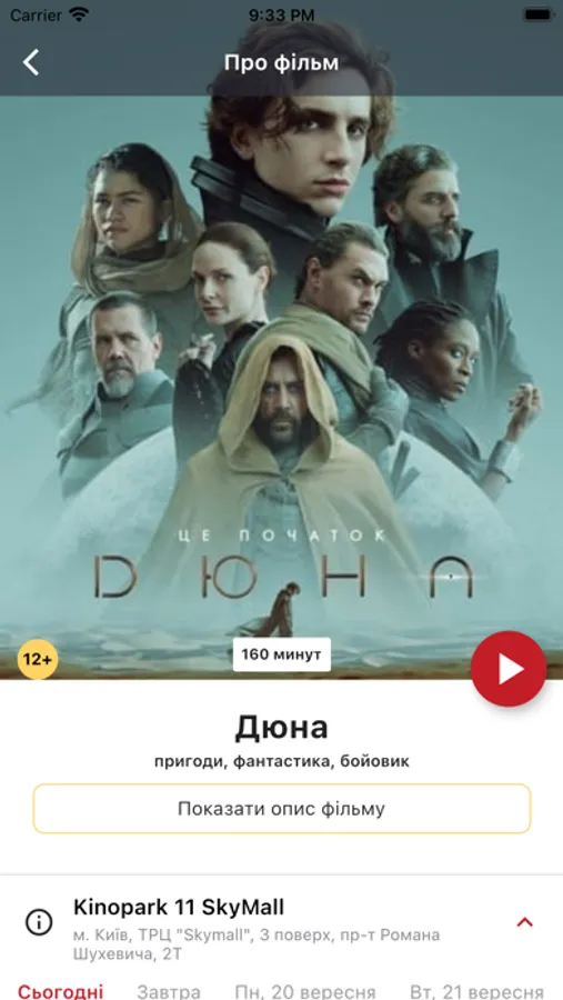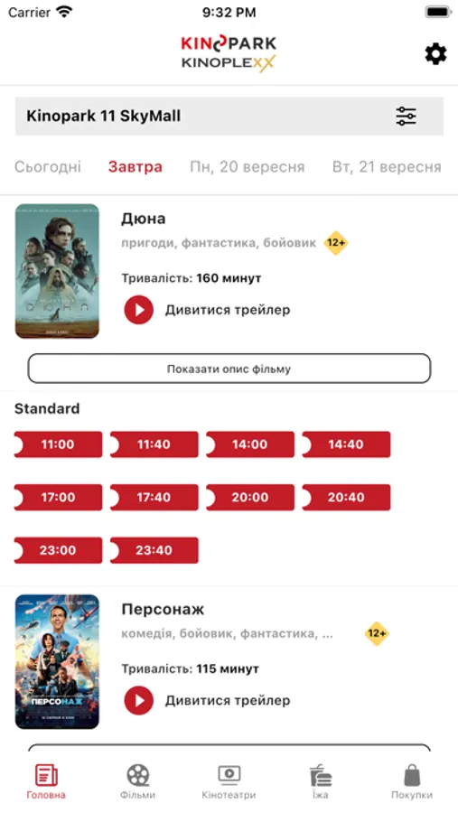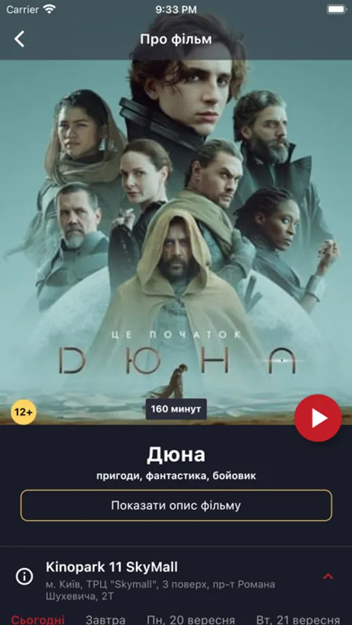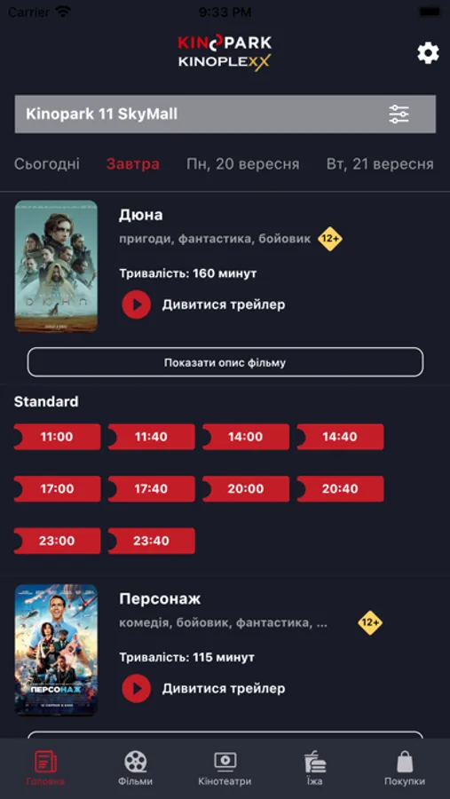 С помощью данного приложения можно узнать что идет в кинотеатрах сети Kinopark, просмотреть информацию о фильмах, выбрать удобный сеанс и купить билет.