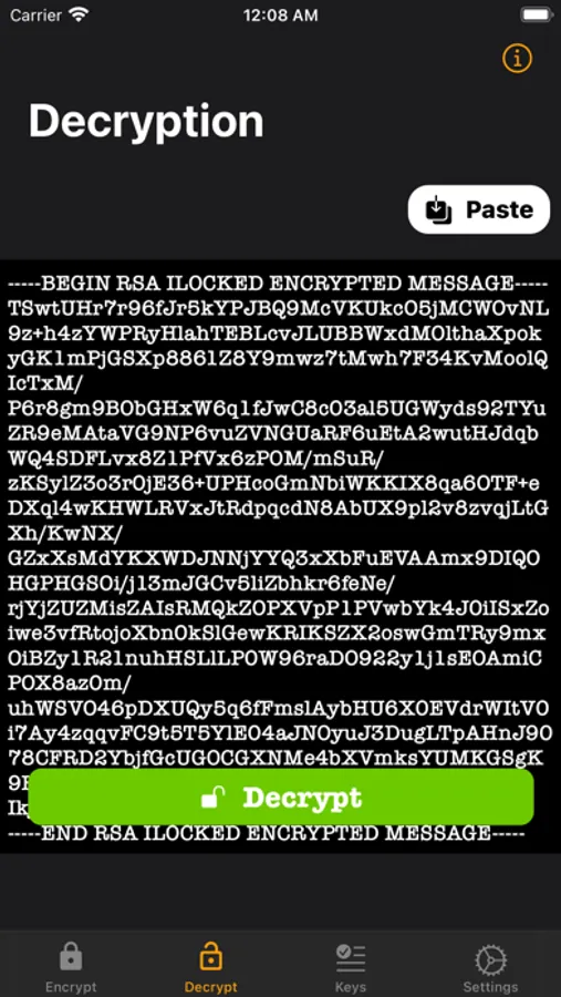 Decryption : Receive secret messages and paste them in iLocked. Find out what has been encrypted with your public key by your friend.
