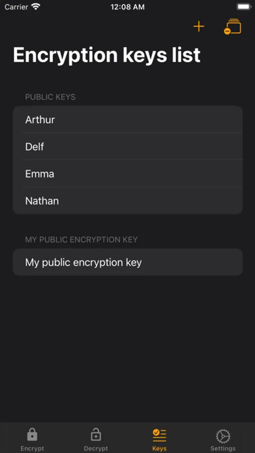 Store your friends' public key, encrypt for them or decrypt what's for you. And all of that without any internet connection ! Taking back control of your private life has never been easier.