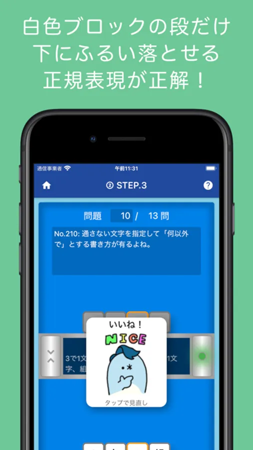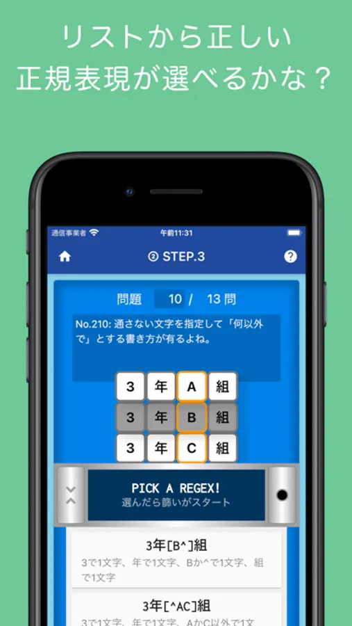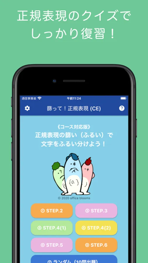 学習コース「まずは「使える」を目指す!正規表現始動コース【検索編】|覚えて使えるまでの7つのステップ・7つの型 」のSTEP.2からSTEP.6までの各カリキュラムごとに、学習内容の確認と記憶の定着を図れるようメニューと問題を再構成しています。使い方は従来の「篩って!正規表現」と同様です。