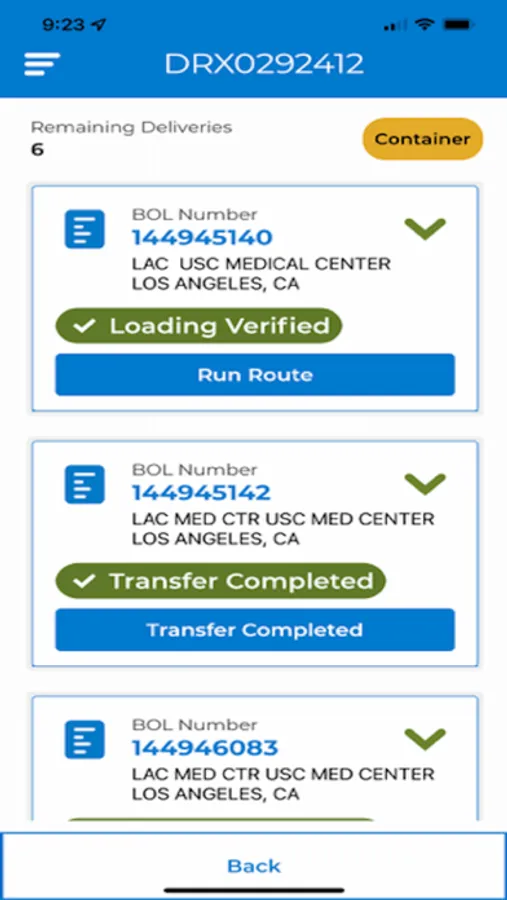 · confirms when you're at the correct tank / dropoff location