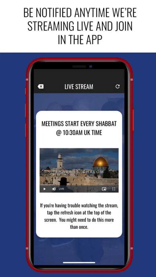 This app is designed for those who Ahava Yisrael, and our friends around the world. Stay connected and never miss a Shabbat service again with our app. No need to rely on Facebook or YouTube, you can now watch our weekly live services directly in the app and receive notifications when we go live.