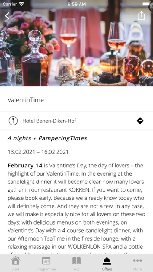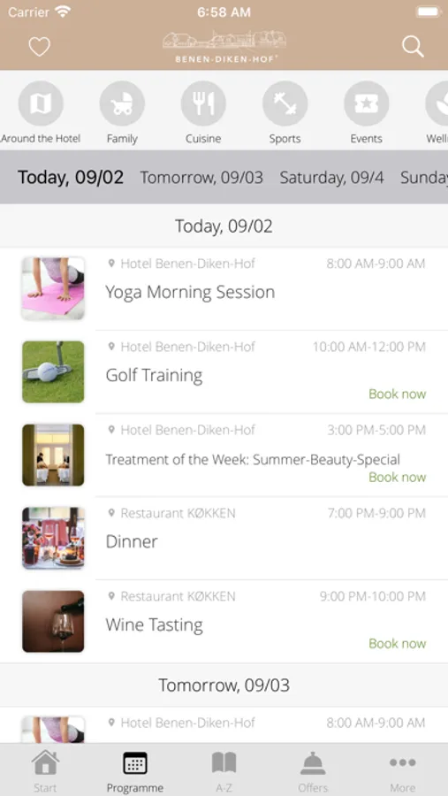 Filter by different interests such as leisure, culinary, spa and golf. Put together your own program. In this way, the Benen-Diken-Hof app offers content tailored to your personal needs.
