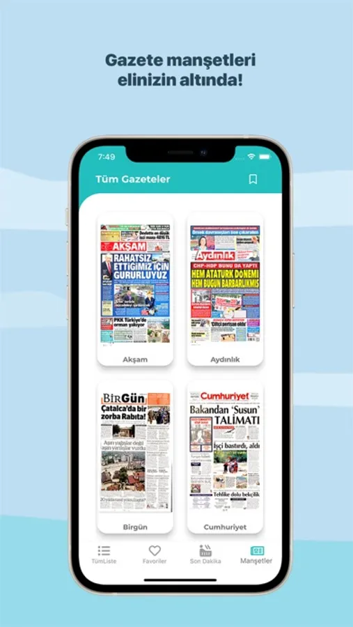 Gazeteler uygulaması ile Türkiye'deki yayınlanan tüm gazetelere ve bugünün gazete manşetlerine tek bir yerden ulaşmanız sağlanır.Tüm Gazeteler ile uygulamadan ayrılmadan tüm gazeteleri okuyabilir, son dakika haberler ve gazete manşetlerine doğrudan erişebilirsiniz...