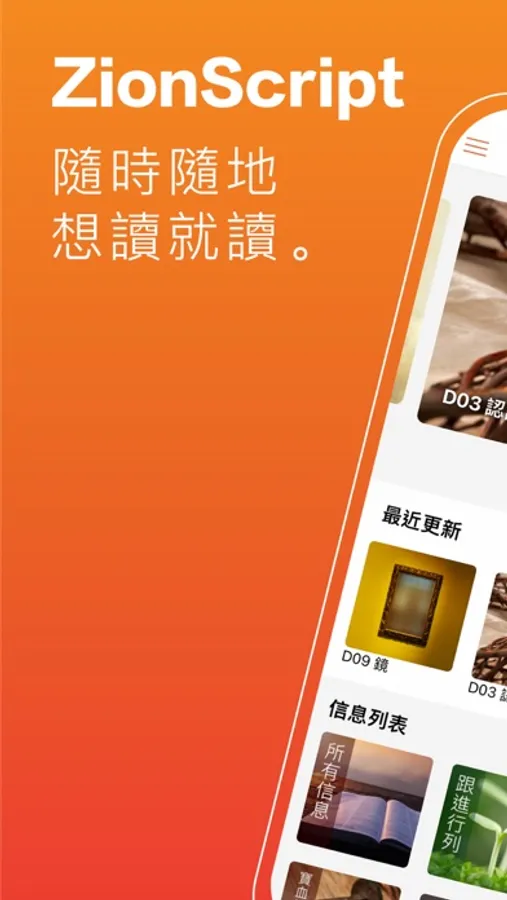 ZionScript 的開發是源於一份嘗試,以應用程式技術去設計一個類似電子書的App,提供信息的聽寫文字版本及語音播放。從自身的學習需求去構想所需功能,形成一個靈修工具,去幫助自己或身邊的肢體重溫過往的信息。接著,我們會嘗試加入更多元素,使學習過程更豐富。