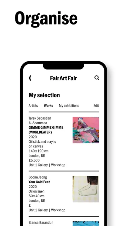 Fair Art Fair is a new app-based digital destination for artists, collectors, curators, and the art curious. Conceived, designed, and led by artists, Fair Art Fair offers the tools, connections, and possibilities for building a fairer, more transparent art world.