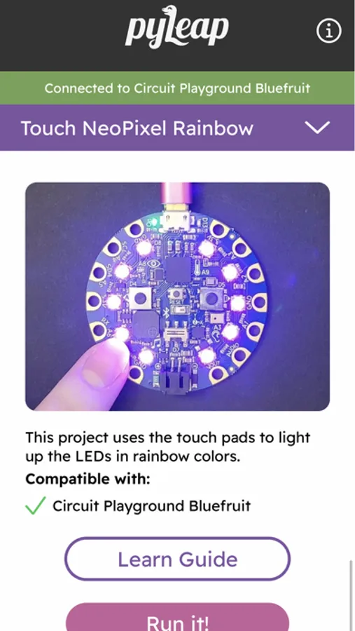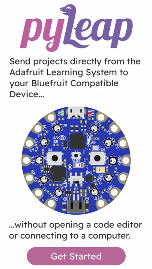 PyLeap is an app that allows users to easily download code files and assets and transfer them to their Adafruit devices using Bluetooth Low Energy (BLE) or Wi-Fi.