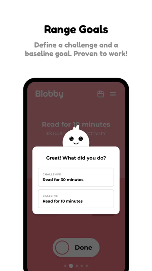 Blobby is your cute buddy to help you develop healthy habits in the most important aspects of your life. Keep your Blobby happy by sticking to your habits!