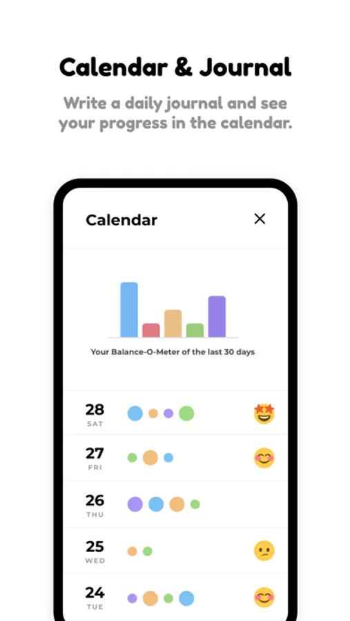 Reflect on your day and mood for a clearer and healthier mind. See your progress in the calendar.