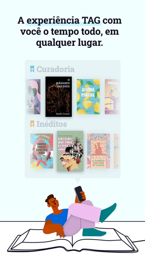 Enquanto você lê o livro do mês da TAG – Experiências Literárias, outros milhares de leitores fazem o mesmo – aqui no clube, não há o perigo de, ao finalizarmos uma leitura, não termos com quem conversar! E para melhorar a interação entre nossos associados, criamos um aplicativo para celular, uma rede social onde os associados poderão se conhecer e discutir cada uma das obras, enriquecendo ainda mais sua experiência aqui no clube.