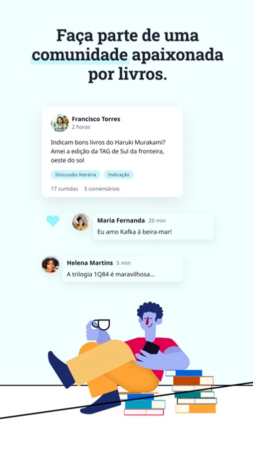 Compartilhe conosco suas impressões de leitura e contribua para que a experiência de todos seja ainda mais rica – afinal, um livro não termina quando fechamos sua última página. Vamos conversar sobre literatura?