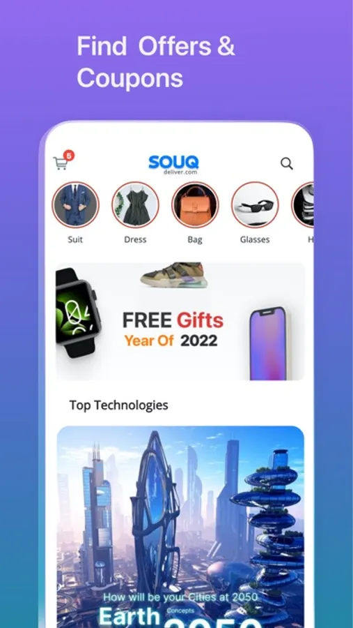 Souq Deliver App has features such as exploring the stores, searching and finding the products, adding to cart, placing the order for cash on delivery & Card etc.