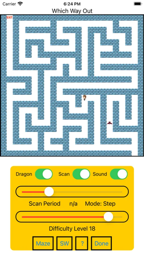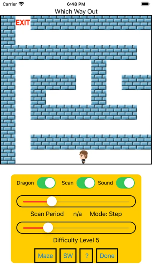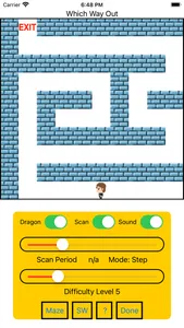 Which Way Out is a maze game for persons with motor disabilities using switches for direction control. Auto Scan, Step Scan and 4-Switch modes are supported. It also works well with external keyboards.