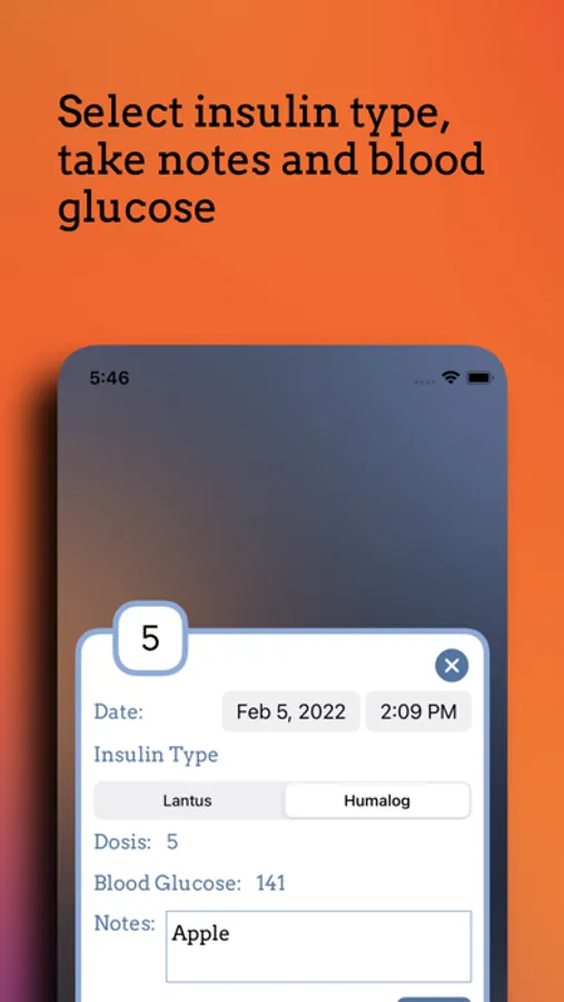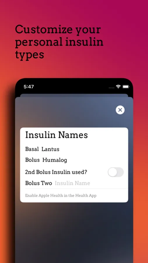 - Synchronise blood sugar values and insulin intake with Apple Health