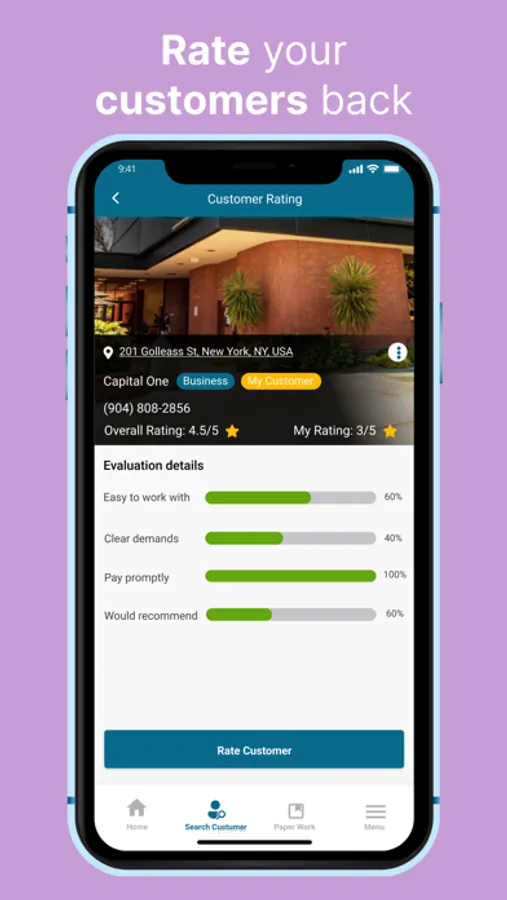Hindsight Rated is the only app that lets your business rate its customers and see the past history of new and potential customers before you decide to work with them, saving you time, money and a lot of stress.
