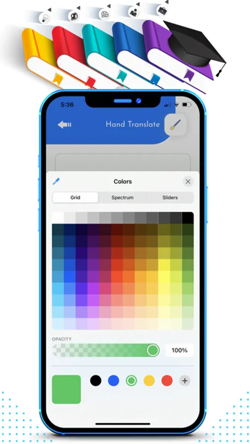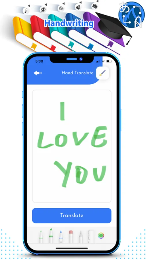 Hand Writing – use a pencil to write a Text – then update the Text (it will capture the hand writing as best as possible – keep in mind some hand writing are hard to read) and then Translate