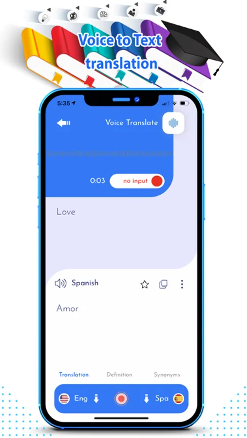 Voice – Speech to Text (record your vocal using the mic) and then Translate
