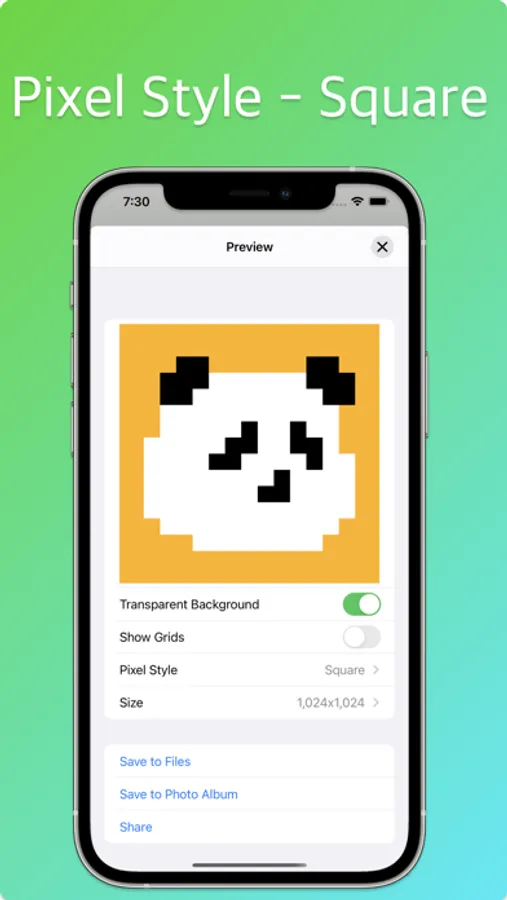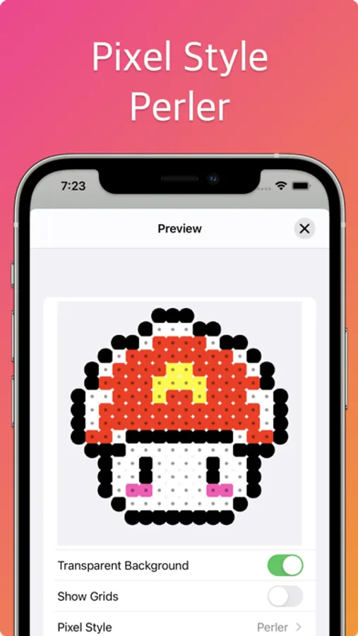 • Pixel Styles: apply a style to pixels when export, such as perler, circle, square.