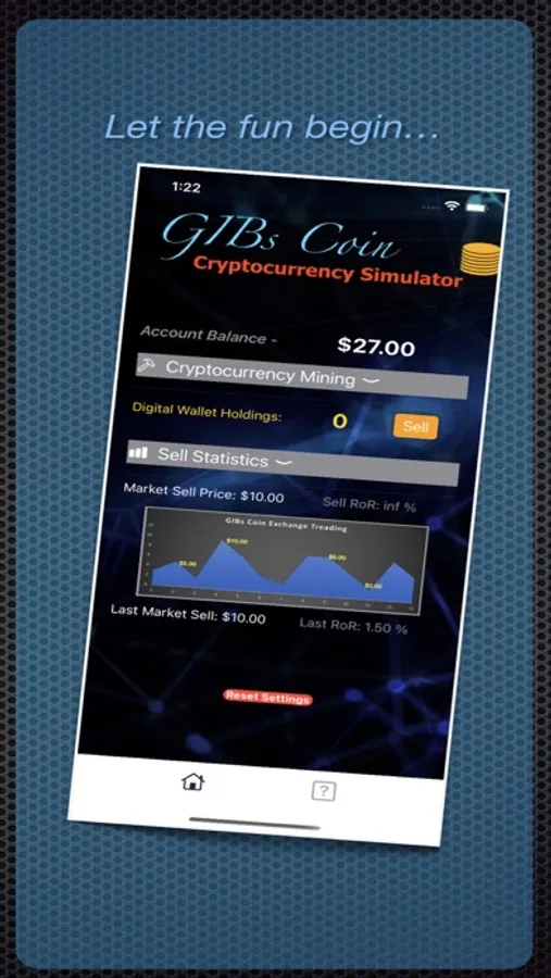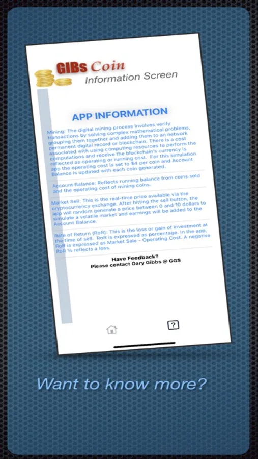From the developer of the 'ExpSAFE' mobile app suite comes GIBs Coins SIM. A simple app that simulates mining of digital crypto coins and then allowing them to be sold. It all about light entertainment and the challenge is to try keep your virtual account balance from going into debt. Remember there is an operating cost to mining and be aware it’s an unpredictable market out there when you decide to sell. Do you feel lucky?