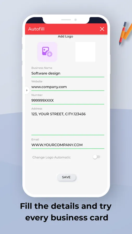 - Logo : Create logo, choose logo from app gallery or upload own company logo from phone.