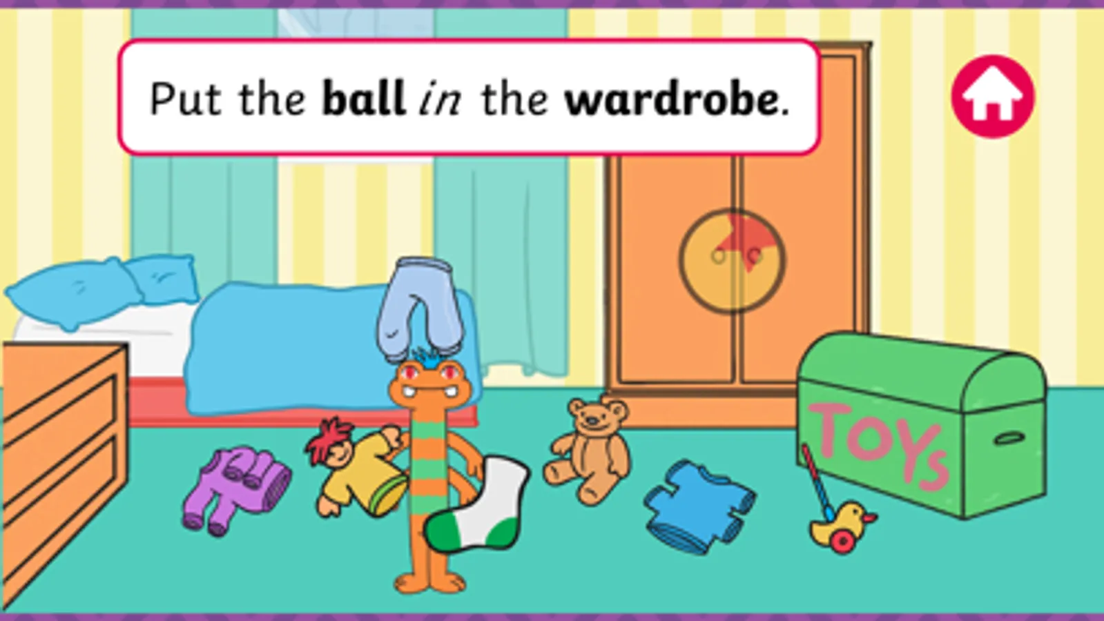 Tidy-Up Time - The monsters are untidy and the room is a mess. Can you help the monsters tidy up by listening carefully?