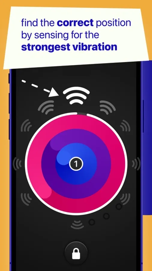 Try to unlock the safe using the vibrations from the phone or watch. By turning the circle, you will feel vibrations of different strengths, and your job is to determine which position of the circle is correct.