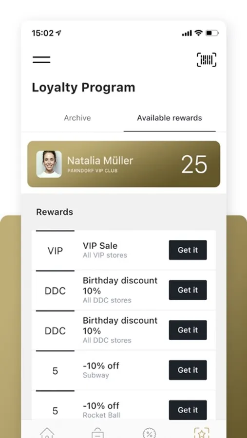 Introducing the Parndorf loyalty application. Become a member of the VIP club and, in addition, always have your virtual loyalty card with you.
