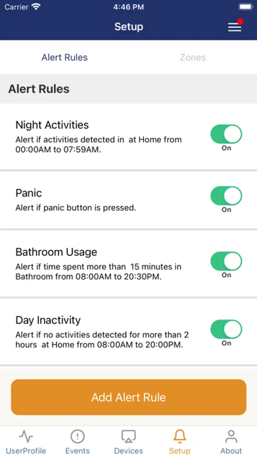 LifeCare is a non-intrusive, non-evasive smart elderly monitoring and alert system that tracks the activities of the elderly through wireless activity sensors; create unique profile of the elderly based on data collected from sensors so as to be able to detect anomalies and push alerts to intended caregivers. LifeCare app allows caregivers to view activity chart, receive and respond to alert notifications, setup alert rules and more.