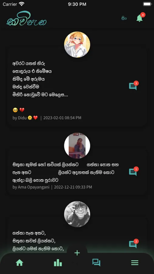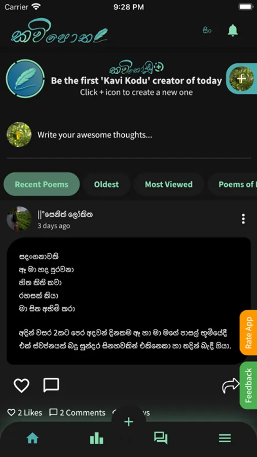 It's time to show your poetic skills to the country. 'Kavi Potha' is the first and the most exclusive Sri Lankan platform for poets to share their creative poems with others. Now you can easily share your creative thoughts among people.