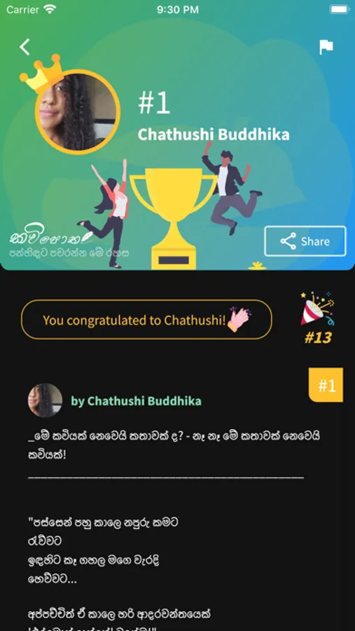 Most people tend to write their thoughts on paper when they're alone. They never think about the value of sharing them with others. With 'Kavi Potha,' you don't have to write poems on books anymore. You don't have to worry about losing your valuable poem books anymore. Now you can write and share your poems digitally using the 'Kavi Potha' app.