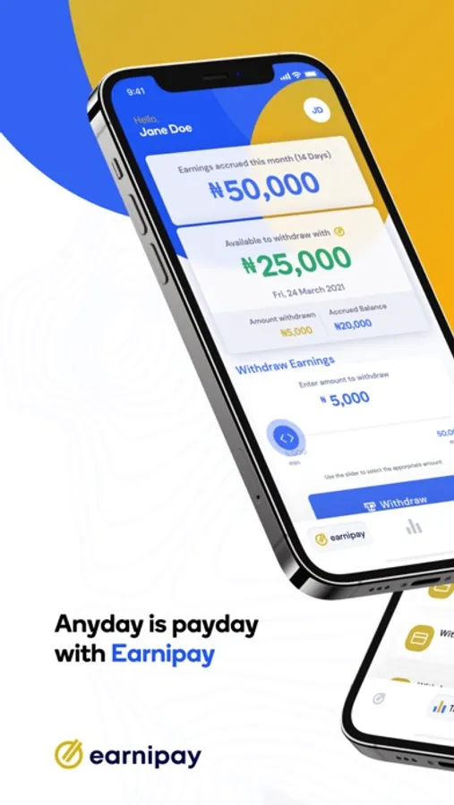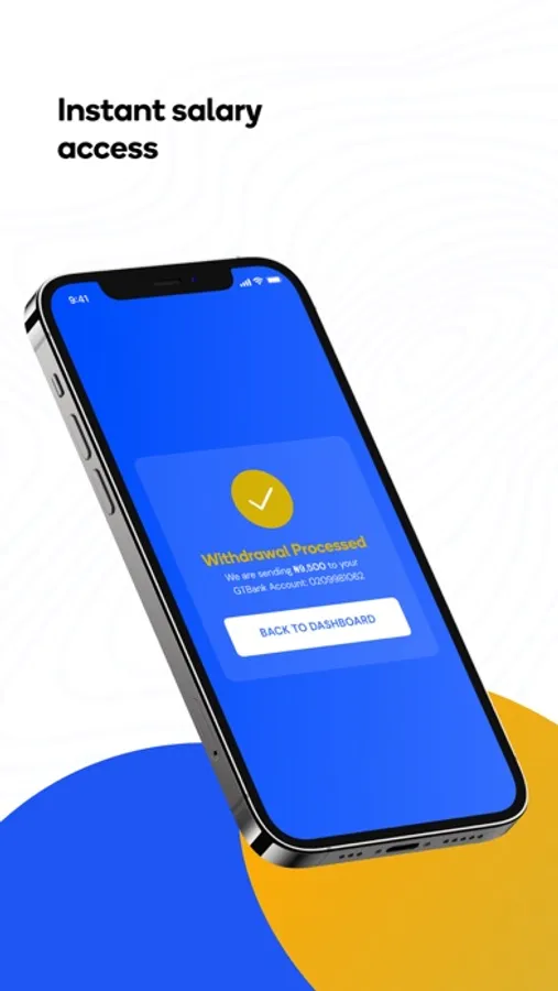 We partner with your employer to give you instant access to your earned pay and enable you to control your finances on the go with no hassle. You can get 50% of the money you’ve worked for into your bank account instantly at any time, at a small fee between N55 - N1250, depending on the amount you want to access.