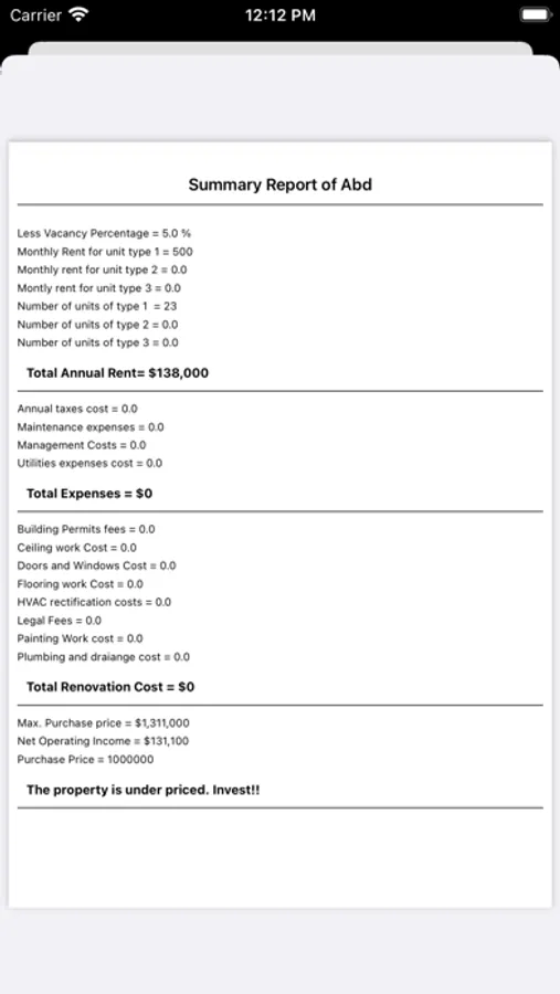 Simple utility application for Investors. Help you decide whether the property is worth your money on not.