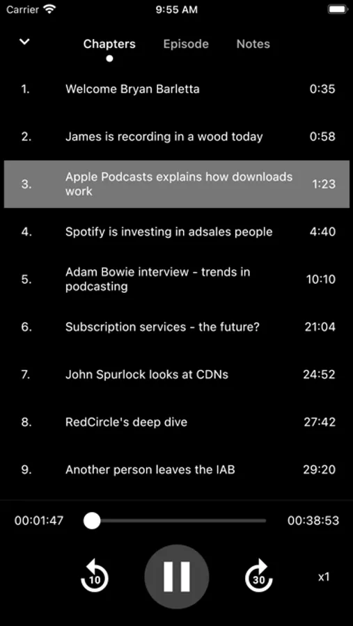 - Pause a streamed or downloaded episode and pickup where you left off later on.